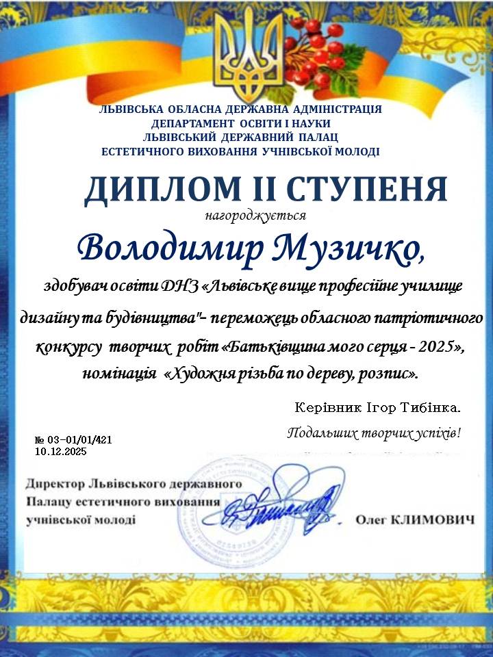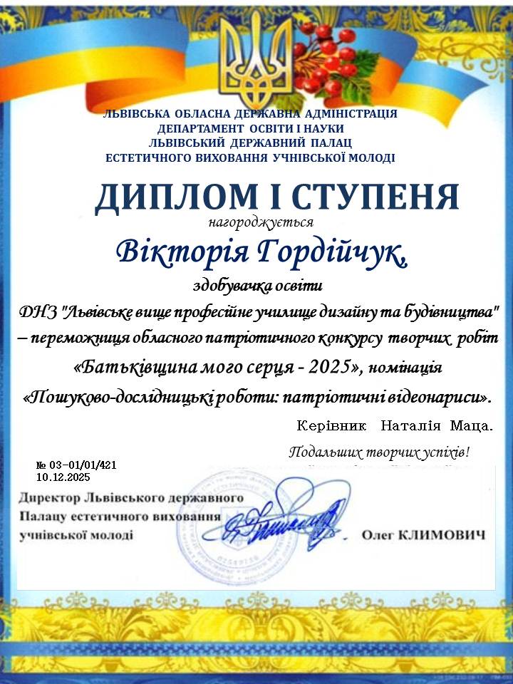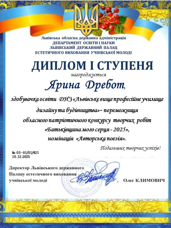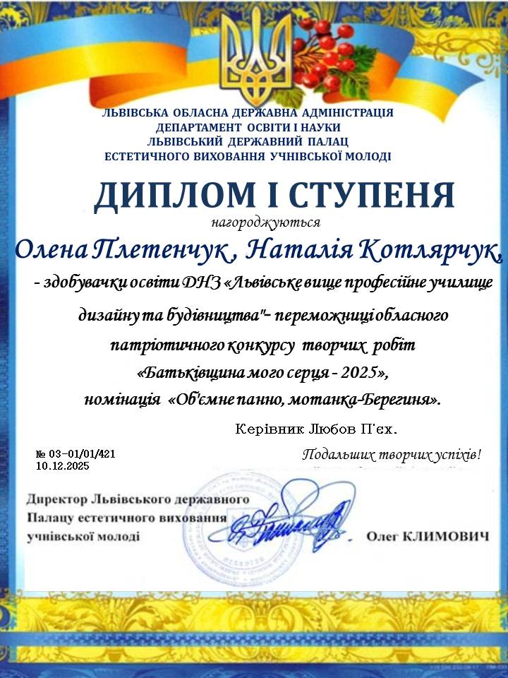 Вітаємо наших талановитих студентів – переможців обласного патріотичного конкурсу творчих робіт «Батьківщина мого серця-2025», що показали блискучі результати та гідно представили навчальний заклад.